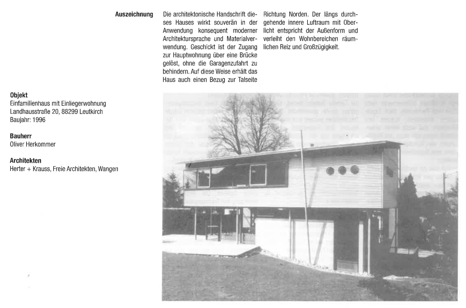Auszug Festschrift Neubau Wohnhaus am Hang Leutkirch